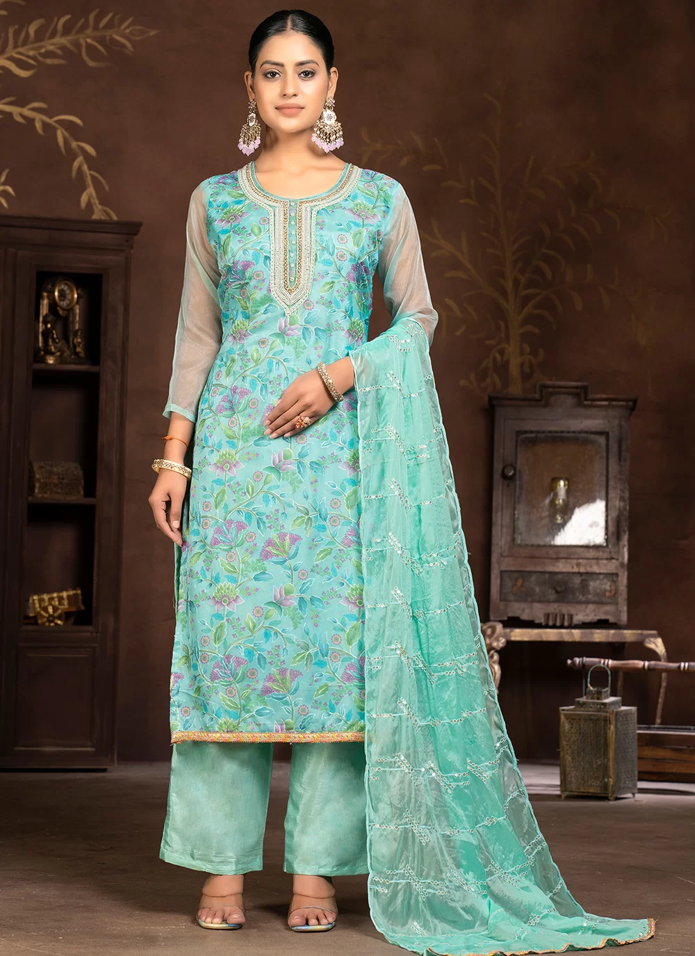 PLANE BLUE-GREEN CHUDIDHAR