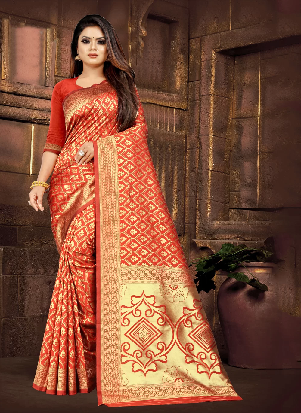 PLANE GOLDEN-RED SAREE
