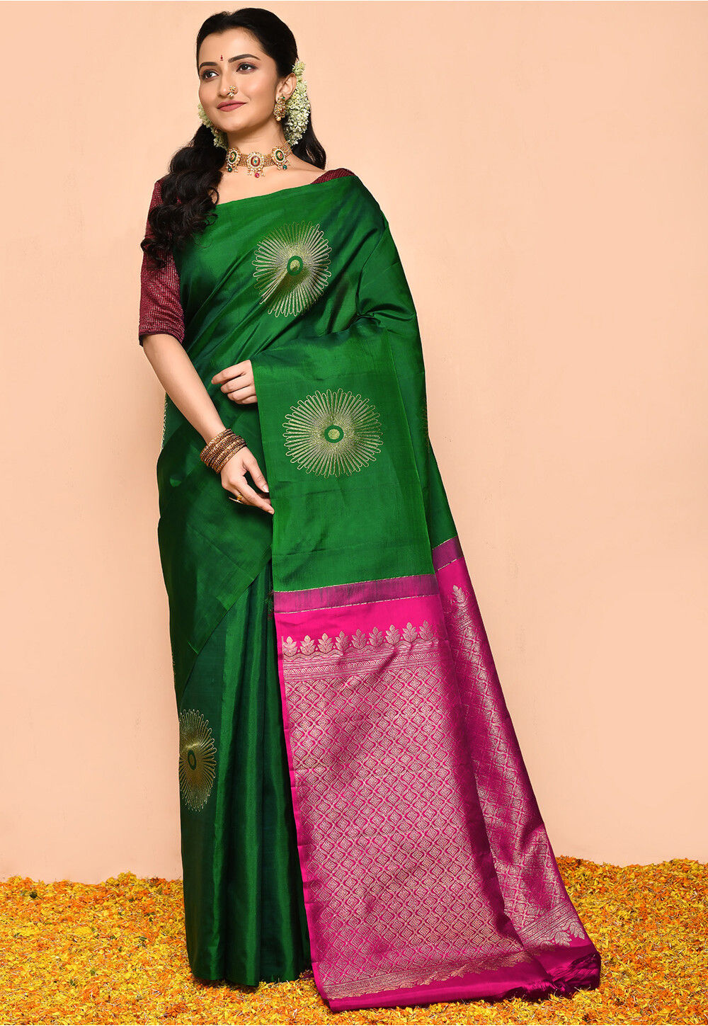 DARK SANDLE-GREEN SAREE