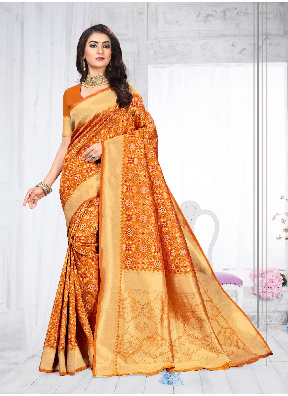 PLANE GOLDEN-ORANGE SAREE