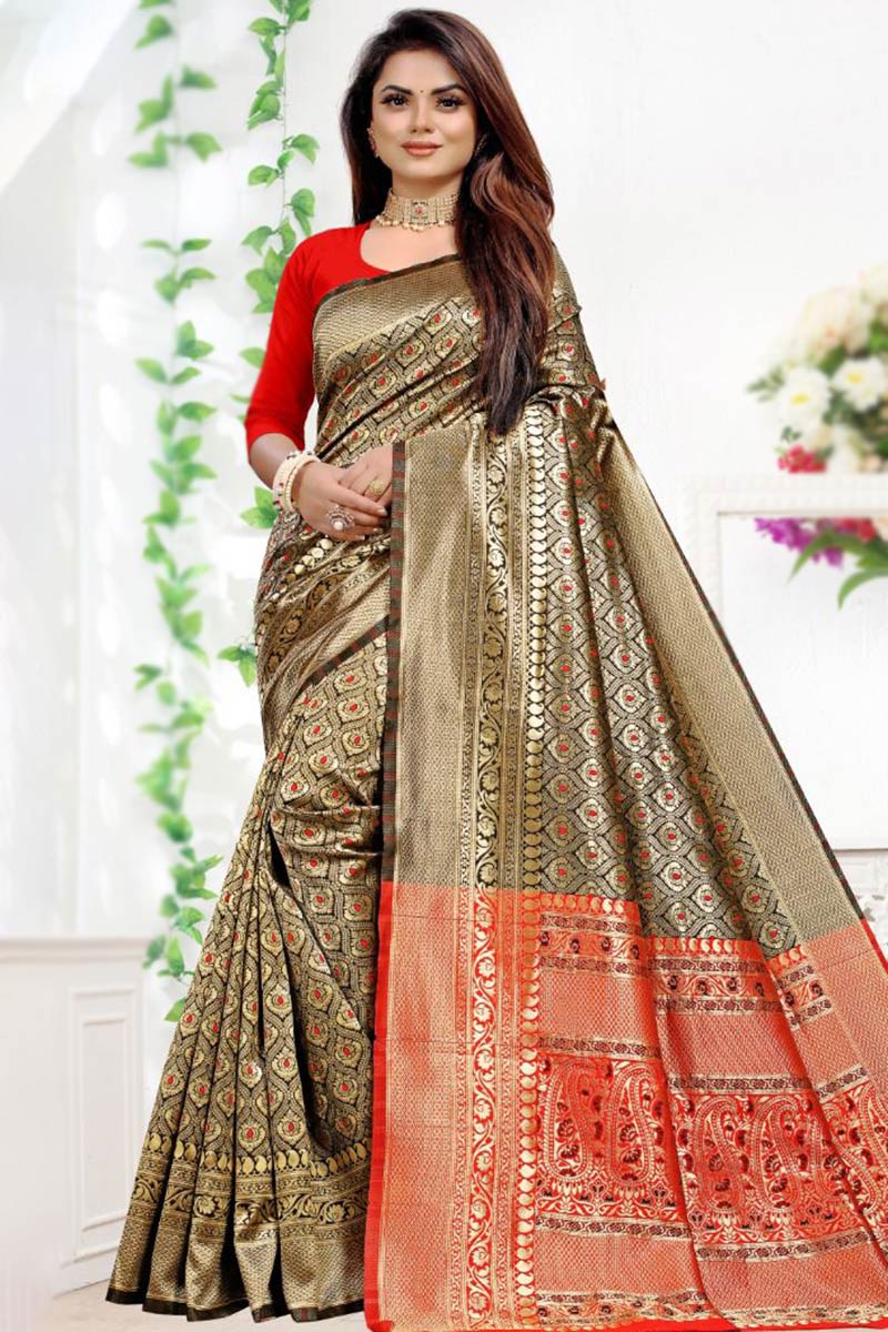 PLANE BLACK-RED SAREE