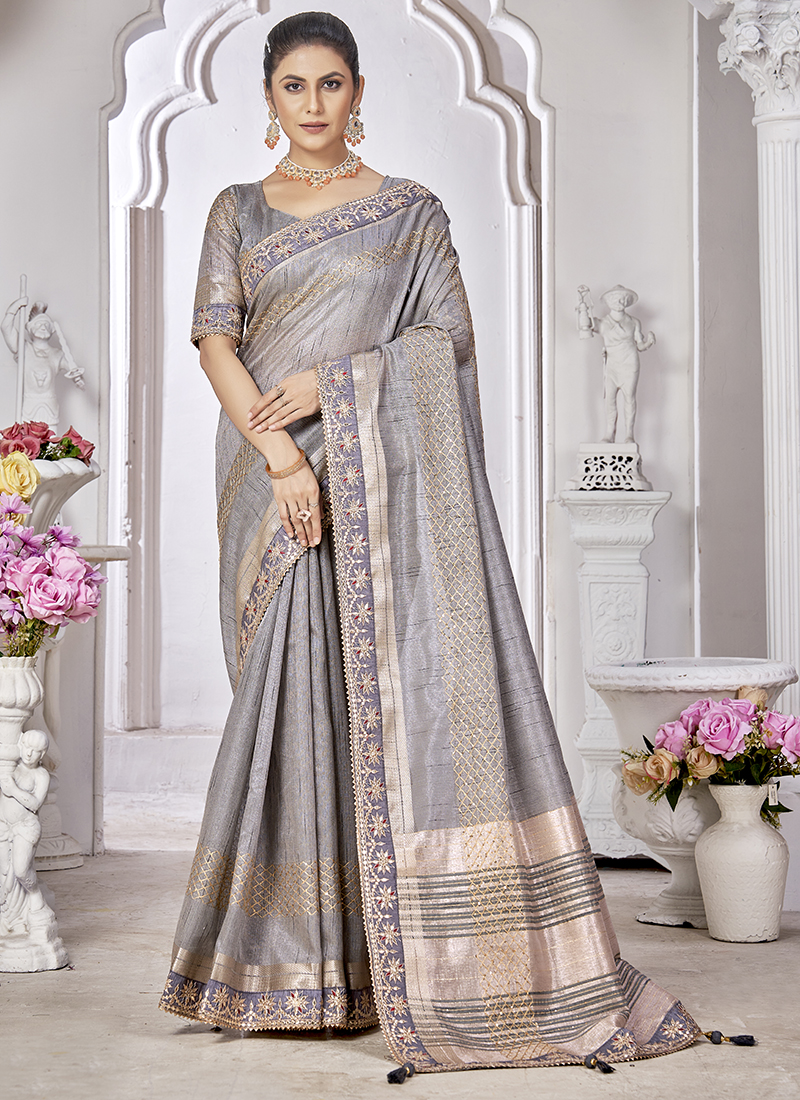 PLANE SILVER SAREE LIKE PEAKE